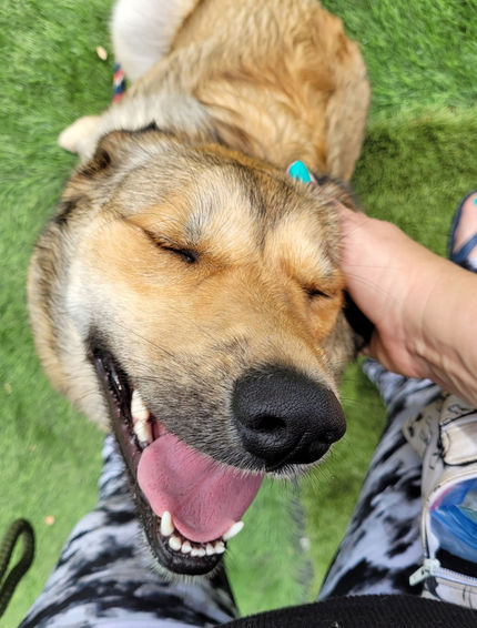 Roxy is a young, energetic shepherd mix who didn't have a very good life before finding refuge at Autumn Acres Animal Rescue. The folks at Autumn Acres knew that Roxy needed some extra work getting along with other doggos, so she's in The Pet Connection's training program now. She's pretty much a star student!